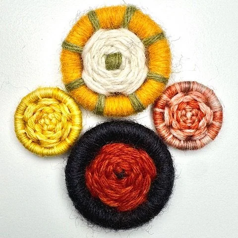 Join Tania of TJFrog to make contemporary basketweave Dorset Buttons. With basketweave being one of the seeding patterns used in Gansey knitting and the Gansey knitting connection here on the East Coast of Fife, it seems fitting to explore this traditional stitch of the heritage craft of Dorset Buttons. Try out this stitch using different colours and weights of yarn to make beautiful buttons for your hand knits.